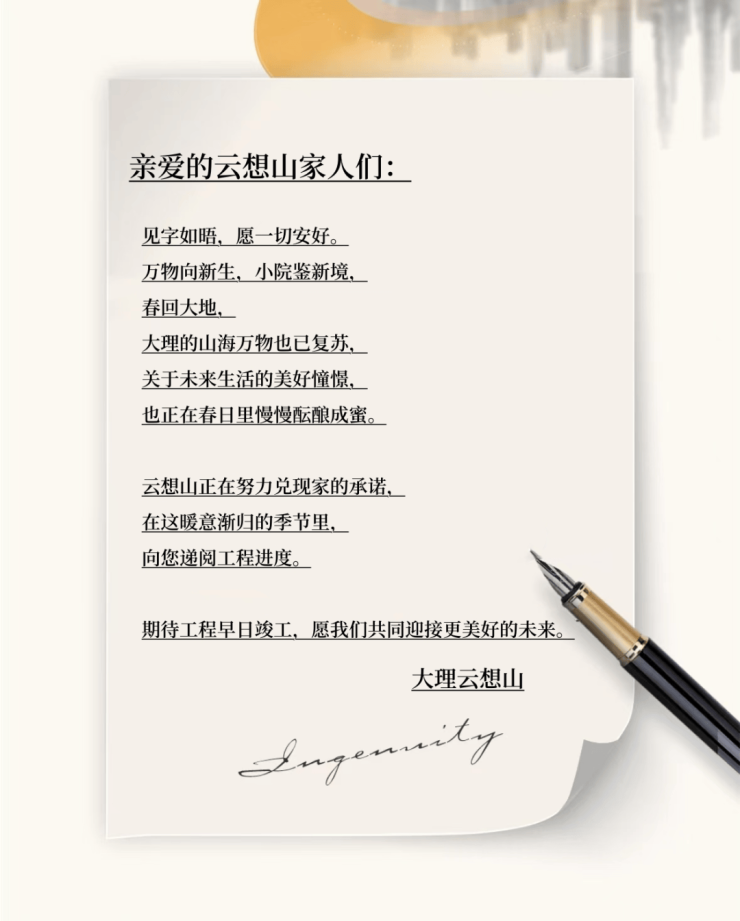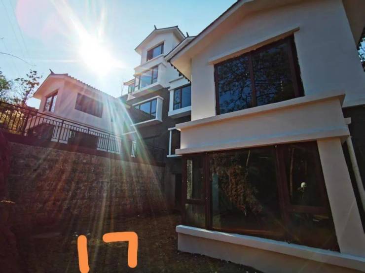 17栋主体已完成、外墙涂料已完成、屋面瓦已完成,庭院院墙完成,入户门完成。栏杆安装完成、室外管网埋设完成、室外景观工程完成;