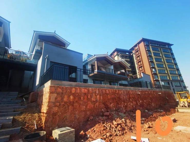 10栋主体封顶完成、砌体完成,内墙抹灰完成,外墙抹灰完成,屋面防水完成,腻子完成100%,露台压顶小青砖完成100%,窗框及固定玻璃安装完成,屋面盖瓦完成,室内二次电管网配管完成,给排水管安装完成,露台栏杆安装完成,涂料完成,外架拆除完成,室外钢楼梯安装完成,室外附属工程施工中;