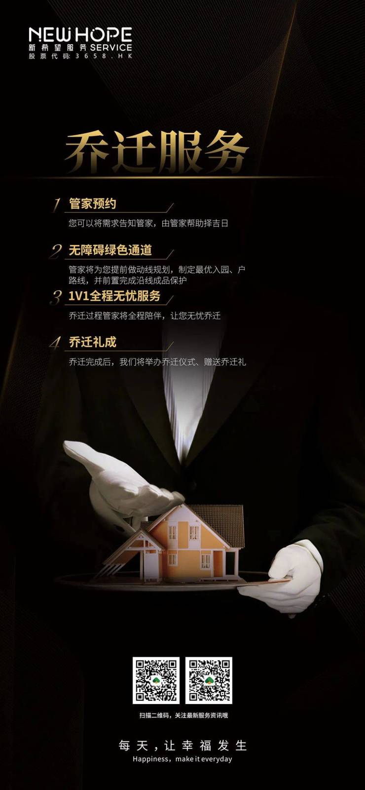 同时,昆明新希望服务也特推出“房屋管家”与“乔迁服务”两项增值服务,率先在锦麟峯荟项目落地,助您资产打理、乔迁新居省心无忧。后续将在昆明新希望服务各园区持续推行,为更多业主提供舒心便捷的生活服务。