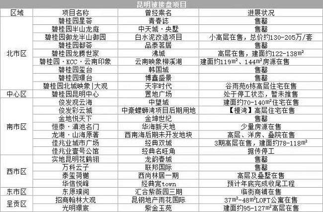 现在昆明已被接盘的部分烂尾楼名单如下: