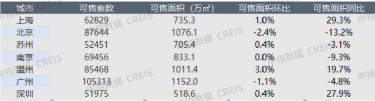 上周(1月15日-21日),中指研究院监测的7个代表城市整体库存环比略涨0.05%。其中,一线城市,上海、深圳库存环比均略有上涨,涨幅分别为1%、0.4%;北京、广州下跌,跌幅分别为2.4%、1.1%。二线城市中,温州、苏州库存环比上涨。