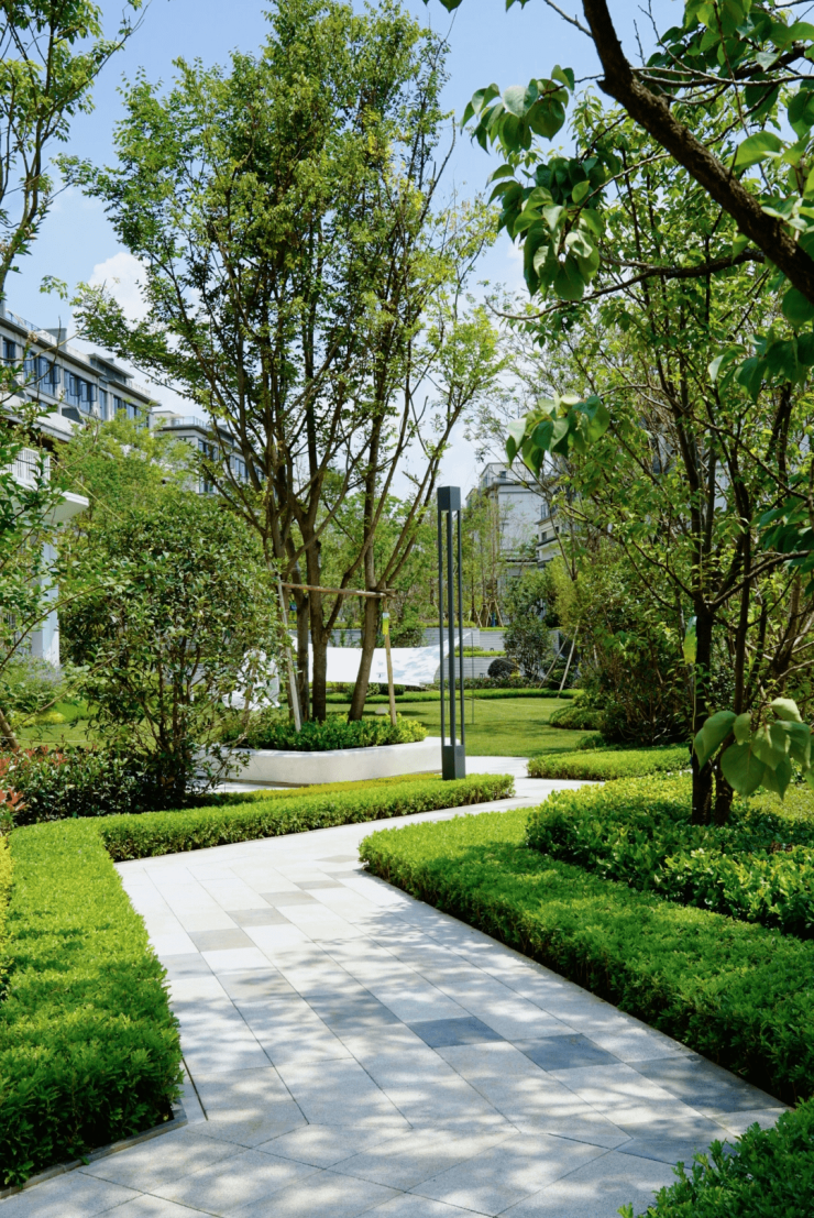 山林之乐不仅在云麓光合叠院,也在园林间。得意于地块原生坡地的优势,云麓九里是一个天然的台地住区,由此设计出的园林,宛若自然山林。婉转迂回,层层叠叠间,草木、原石、静水、台阶、庭院……相交相融,自成一境。设计师精心打造出的林泉汀步、浅山夕照、亭亭如盖等七大场景,组成云麓“浮生七梦”,让精神在此与天地万物对话交流,圆满我们长久以来想要亲近自然的心情。