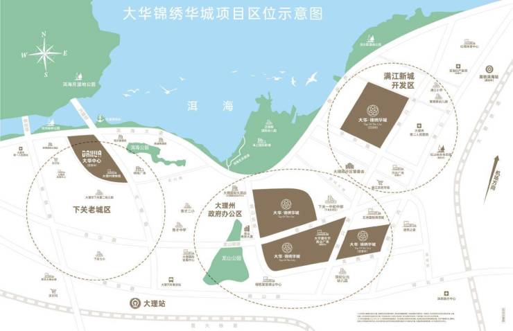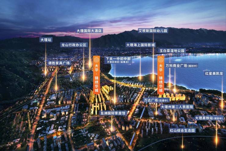 大华·锦绣华城是大理规模较大社区(在建中),总建筑面积约78万方,住宅体量约52万方,商业约5.2万方,公建配套约0.78万方,土地储备多、在售地块多,共由9个地块组成。位踞满江核芯地段,距大理机场直线距离仅约5.5KM,邻近高铁满江站(规划中),高铁北站建设提速,满江高铁红利时刻即将真正实现。