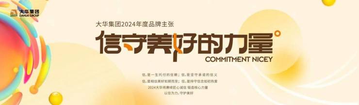 大华集团总部位于上海,成立于1988年,作为30余年的品质造城专家,是最早起步、最大规模中国城市更新运营商之一。深耕全国五大区近30城,以筑造平方公里跨周期项目的强大生命力,持续赋能城市发展。在机遇与挑战并存的形势下迎难而上,2023年位居中国房地产百强企业TOP30,中国物业服务百强企业TOP38。2024年,大华将践行“信守美好的力量”的品牌主张,以信为力,守护美好人居。