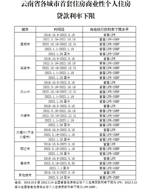 ①由于昆明并未公布2019年10月7日之前的利率下限,但是根据调整规则,贷款加点幅度调整为当地下限(当年的下限为首套LPR),也就是4.2%;