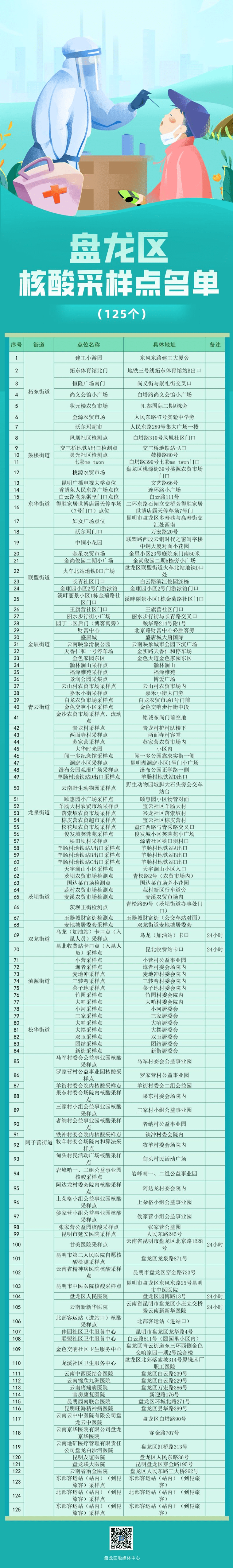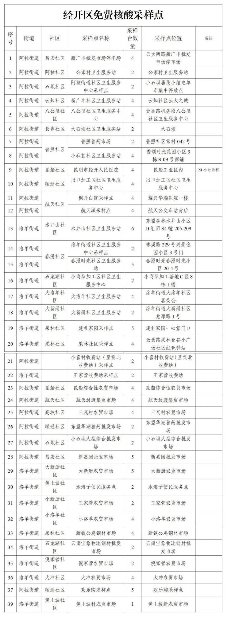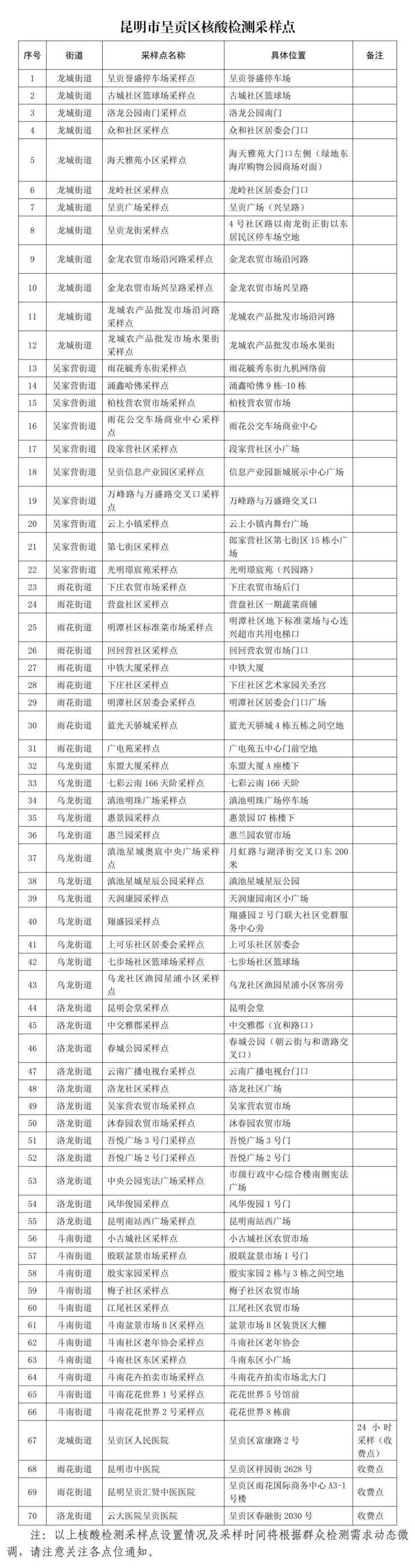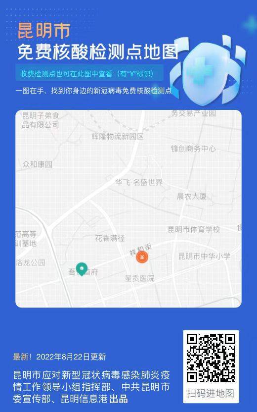 请市民群众使用《昆明市免费核酸检测点地图》时注意查看。