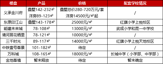 根据不完全统计,目前已经面市的项目中,只有清河居花栖里、义承金川府、中铁壹号峯景没有配套学校,清河居花栖里是公租房改商品房的项目,配套方面不能要求太多,义承金川府、中铁壹号峯景主要卖点是产品,教育方面也是差了一点。
