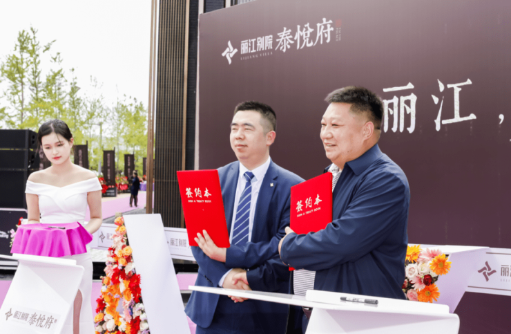 泰悦集团整合知名家装品牌“紫苹果装饰”、先进家居系△杨丽萍老师和泰悦集团杨建荣董事长签署代言协议书