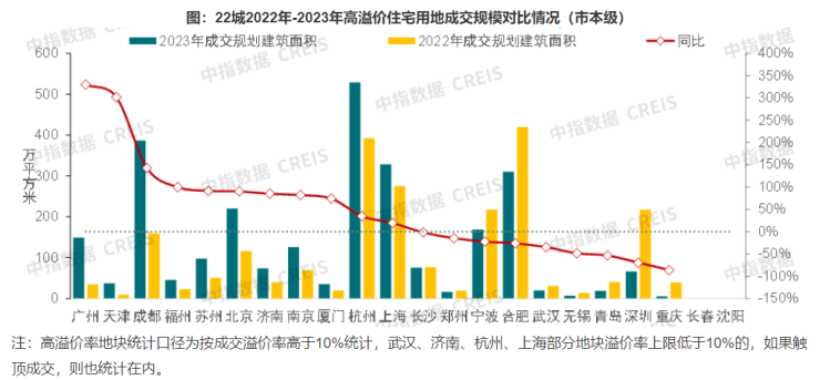 在投资端,从中指研究院数据监测来看,2023年全国300城宅地市场仍然偏冷。