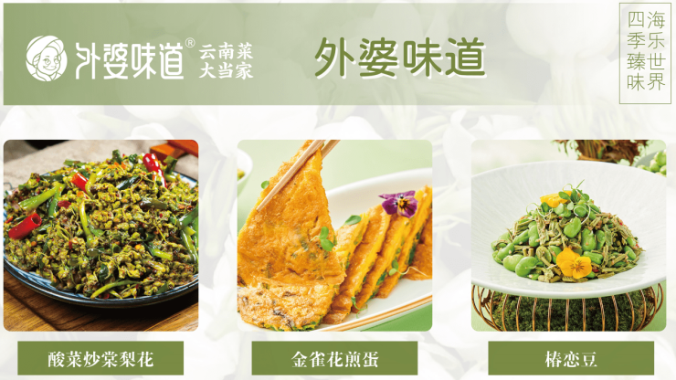 海乐世界LivingMall参与本次春菜品鉴会的场内餐饮品牌有:泰爽金、SOK咖啡餐酒吧、吉布鲁、外婆味道、牛物、本埠、九田家、兰湘记、云南盛、云色傣乡、麓椿花园餐厅、奥黛越南餐厅、岚.山野云南菜、食大利港式茶餐厅、富多来海鲜餐厅、金百合烤鱼、木噶他老挝火锅、大渝火锅、鸭九香干锅等20家品牌餐饮。以春鲜交融用心料理,赋予春季养生美食丰富的内涵。各家餐饮名厨通过以春菜为题诠释“春韵”时令菜肴。为大家呈现一道道舌尖上的春味。
