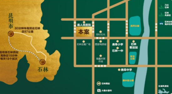 项目坐落于石林快速发展的西城区,也是城市基础配套最为集中的区域,毗邻人民医院。