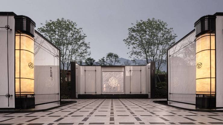 而在所有的景观和空间布局设计中,锦粼天曜将CHANEL的黑白几何线条、对称仪式构成、艺术美学法则等充分运用糅合,让人不觉乏味,反更更显高级。