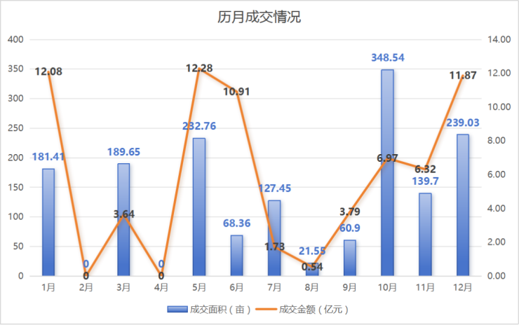 另一方面,2023年共上架了38宗用地,总面积约130.55万㎡(约1958.19亩),实际成交34宗,总面积约107.29万㎡(约1609.35亩),成交占比82%。