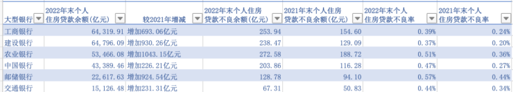 2022年大型银行个人住房贷款余额及资产质量变动情况一览