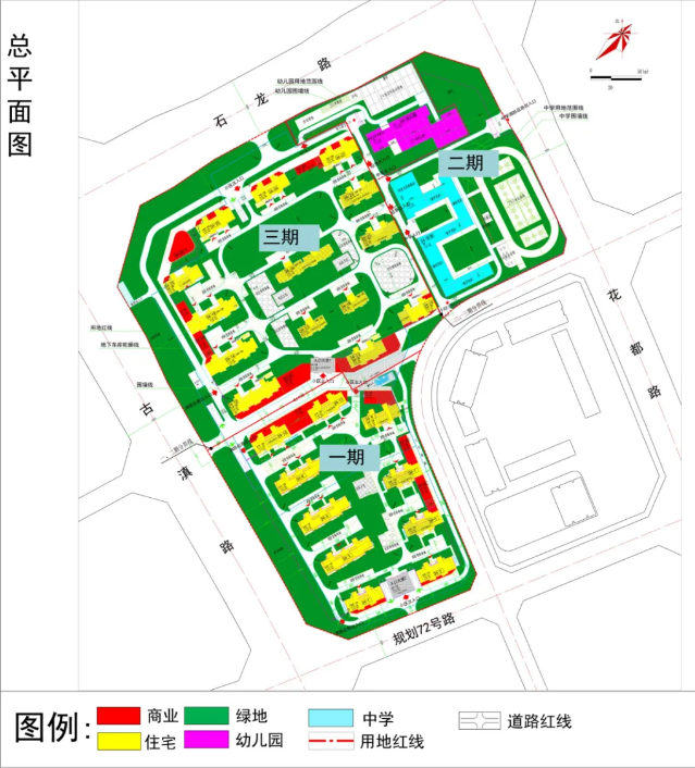 项目由一所30班中学、一所24班幼儿园、24栋高层住宅及商业裙房组成。
