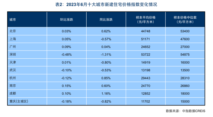 按照中指研究院数据,6月,新建住宅价格环比上涨城市个数为37个。其中,南京受高于城市均价项目入市带动,新建住宅价格环比上涨0.15%;成都紧随其后,新房价格环比上涨0.10%;广州、西安等5个城市新建住宅价格环比涨幅均在0.05%(含)至0.10%之间;长沙、宁波等30个城市环比涨幅则均在0.05%以内。6月,德州、湘潭等18个城市环比持平。
