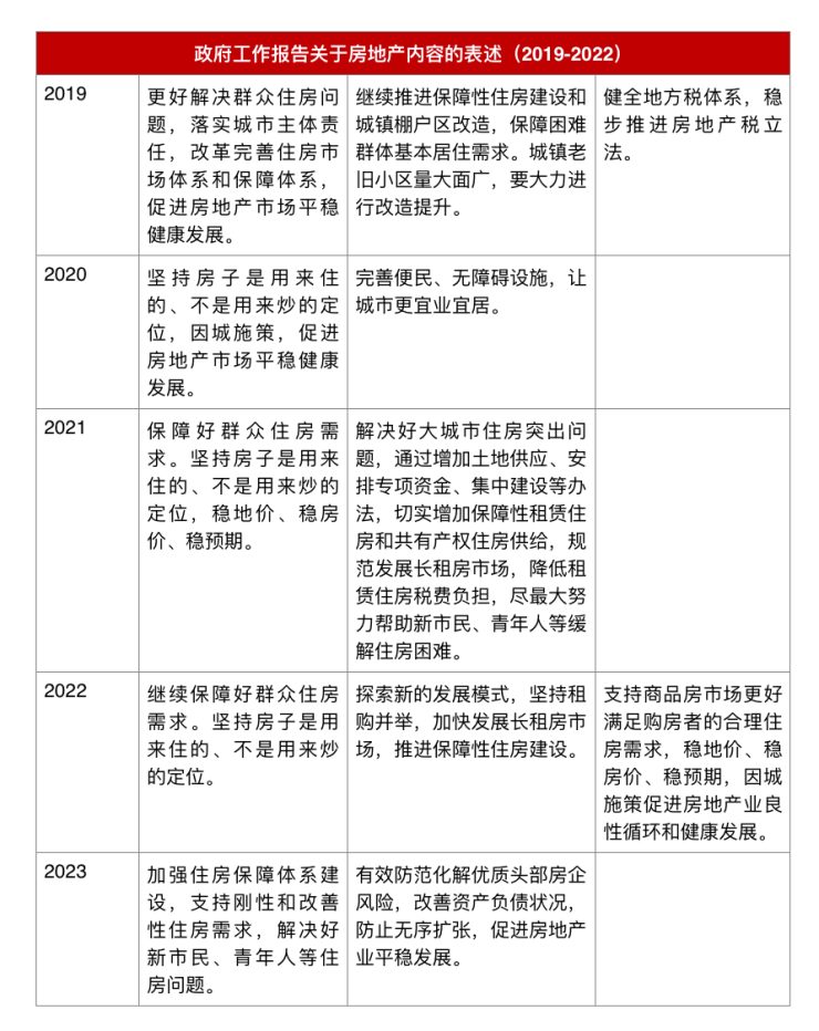 对于2023年房地产方面的工作部署,李克强在政府工作报告中提到,加强住房保障体系建设,支持刚性和改善性住房需求,解决好新市民、青年人等住房问题。有效防范化解优质头部房企风险,改善资产负债状况,防止无序扩张,促进房地产业平稳发展。