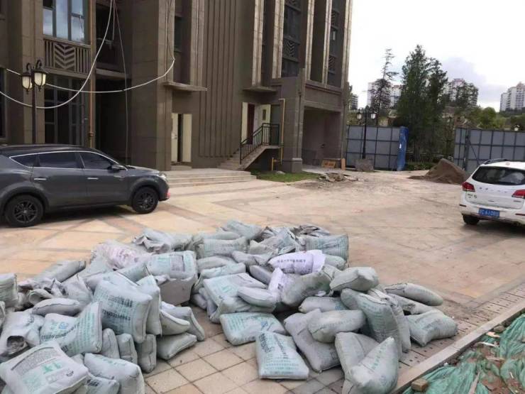 8月30日中午,昆明恒大阳光半岛多个地块有工人在活动,工地现场堆放了石材,水泥,沙等建筑材料。据工人介绍,目前高层区域在做绿化、道路工程,铺单元门口的地砖。也有工人透露,“现在在做水电工程,但目前施工的人不多。”