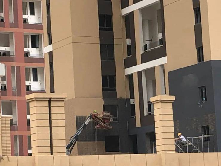 8月30日下午,在恒大城A3地块四期项目现场,工人正在给外立面上涂料。据介绍,四期目前正在进行施工电梯安装,水电、外立面涂料等工作也在进行。待施工电梯安装完成后,施工物料运送的速度会加快。