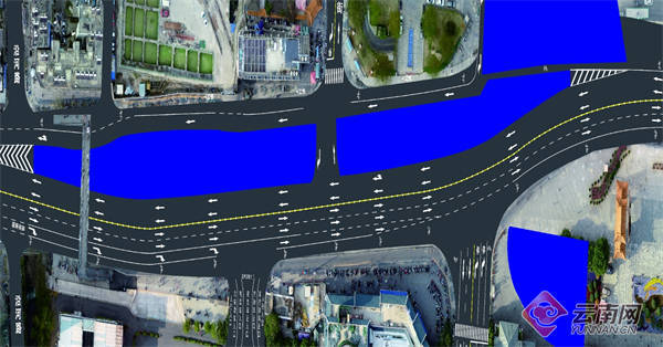 二期第二阶段是在排名前列阶段基础上压缩南侧围挡,增加一条自西向东的机动车道,其余交通组织与一阶段一致。因C号出入口正好位于南通街正下方,南通街至金碧路方向采用在招商银行昆明分行地面广场拓宽一条宽度为4.2米的机动车道方式引入金碧路,进入南通街将通过崇仁街—顺城街—南通街进行绕行。昆华医院大门北侧设有3条自西向东机动车道,其中1条作为由西向东进入医院和即停即走的专用机动车道,大门东侧设有1条3米宽进入主道的引导机动车道及3米宽非机动车道。