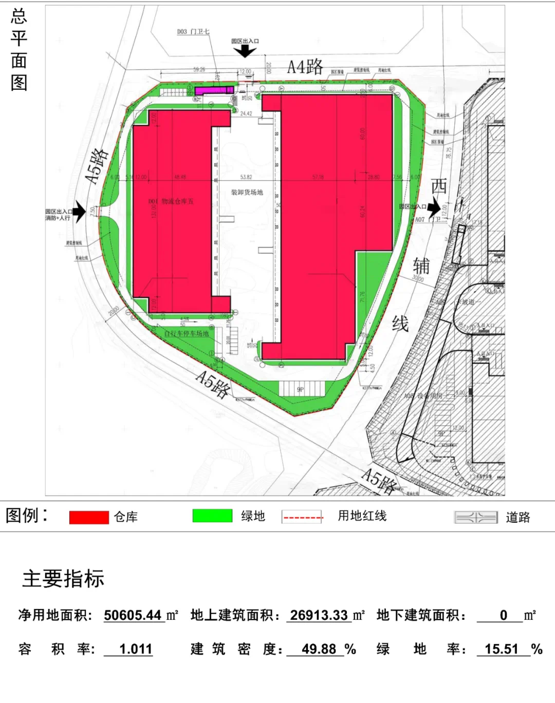 项目用地位于昆明经开区,项目名称为JK-QS-B1-01-02,四至范围为∶北邻A4路,西临A5路,南邻A5路,东临西辅线。项目由2栋物流仓库一层局部二层,1栋门卫为一层组成。无地下室。