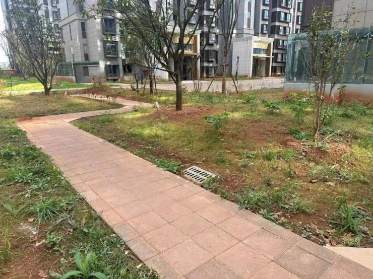 关于小区绿化,目前正在播撒草籽,每天大概有9到10人进行绿化施工,绿化在逐步完善。