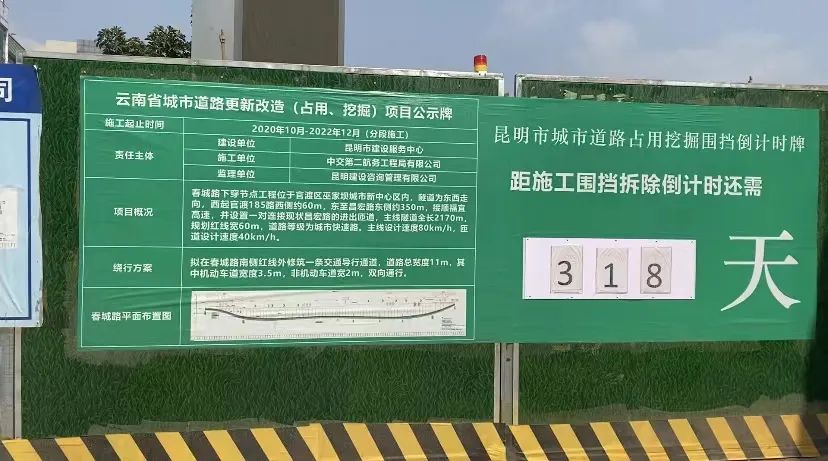 3月29日,都市时报·大象房鉴所记者在地铁1号线巫家坝地铁站旁看到,春城路下穿节点工程正在施工,施工围挡拆除时间为今年年底。