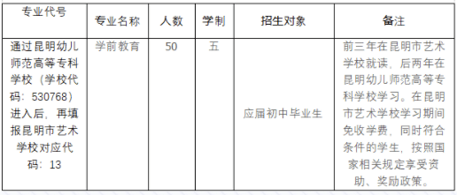 2.面向昆明全市(含郊县区)招收3个普高艺术特色班,共105人;