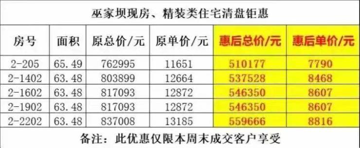 除此之外,近期还有中介在朋友圈发布消息称:巫家坝招商·公园大道特价房优惠后单价低至7790元/平方米。记者咨询销售人员了解到,这批特价房都是公寓,招商·公园大道住宅目前精装在售单价为17000-18000元/平方米,毛坯交付的住宅价格为13000-1500元/平方米。