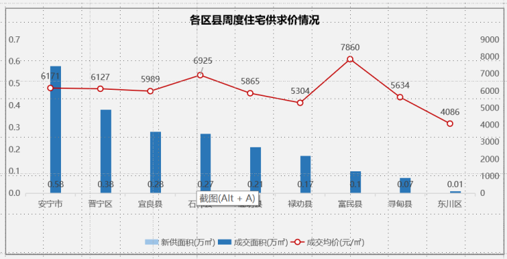热点郊县:安宁主城、太平均量价齐跌;晋宁因古滇名城及滇池美岸高价项目支撑,量跌价升;嵩明市场量价齐升。