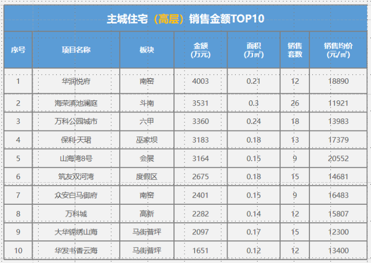 本周住宅成交均价14236元/㎡,环比持平。华润悦府、保利天珺、山海湾8号等高价项目备案,带动均价上涨。
