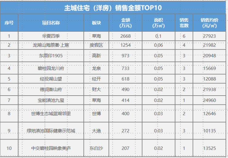 本周住宅成交5.89万㎡,环比上涨15%。主力成交项目为海荣滇池澜庭26套,0.3万㎡;万科公园城市18套,0.24万㎡;华润悦府12套,0.21万㎡等;