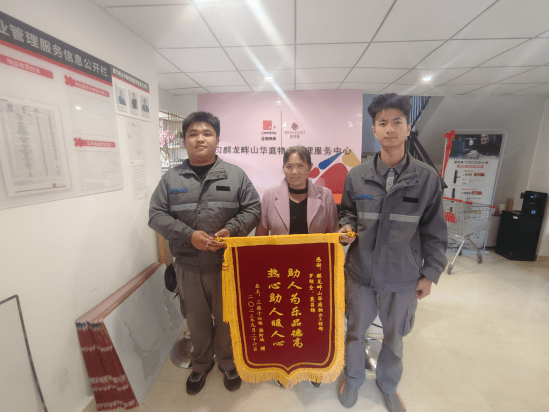 2023年9月26日,都匀畔山华庭3-1-1401业主杨阿姨联系管家请物业工作人员帮忙检查家中电路,工程部莫昌锦、罗绍全立即响应,仔细检查电路,发现短路问题后立即帮忙处理,因该业主家中还在装修期,室内有较多网购灯具无人安装,在与业主对沟通过程中,了解到灯具安装师傅收费为200元/盏,安装费用较高,随即两人主动表示在空闲时间过来,主动免费帮助业主安装灯具,通过两个多小时的认真仔细安装,灯具终于可以正常使用,业主对此非常感动,在房屋装修完成之后,于2023年10月17日,向我物业管理服务中心送来锦旗一面,以表扬和感谢莫昌锦、罗绍全的真诚付出。