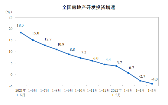 1—5月份,全国房地产开发投资52134亿元,同比下降4.0%;其中,住宅投资39521亿元,下降3.0%。