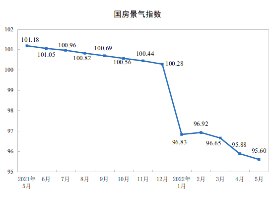 5月份,房地产开发景气指数(简称“国房景气指数”)为95.60。