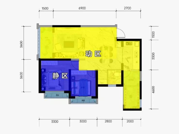 这里有两项指标:①动静分离:频繁活动区(客厅、餐厅、厨房等)与休息区(卧室,书房,衣帽间等)分开;②干湿分离:卫生间的淋浴区和面盆区分隔。