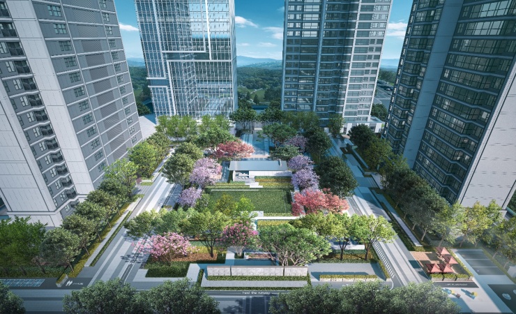 中交·泓园在园区景观方面携手国际知名景观设计机构山水比德,秉承“诗意栖居·传承创新”的理念,汲取花园城市设计精髓,为昆明人民精心打造了一座约7500㎡围合式花园,与中央公园相互辉映,规划了“品质礼遇归家、现代轴线空间、自然功能场景”三大归家礼仪哲学,为业主呈现更具诗意的花园生活大境。