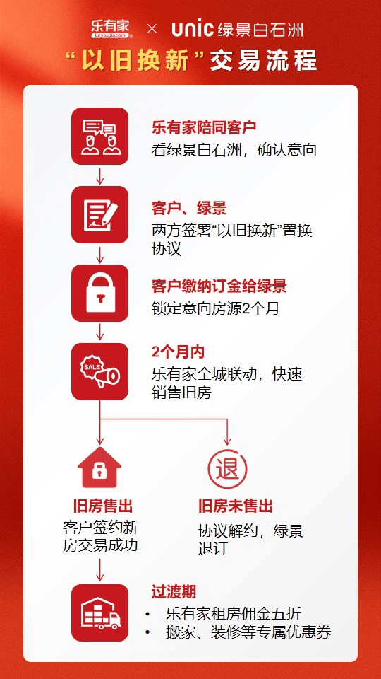 “我们了解到,目前成交的以旧换新单里,大部分旧房与新房的差价并不大,旧房售出后获得的房款能覆盖新房总价的60%以上,加上客户也有一定的经济积累,承担的经济压力不会很大。”乐有家方面表示,在流程上,客户可锁定意向房源2个月。2个月内旧房售出,则前期的订金自动转为购房款,继续新房交易流程;如果旧房未售出,客户可选择退订新房,无违约责任。