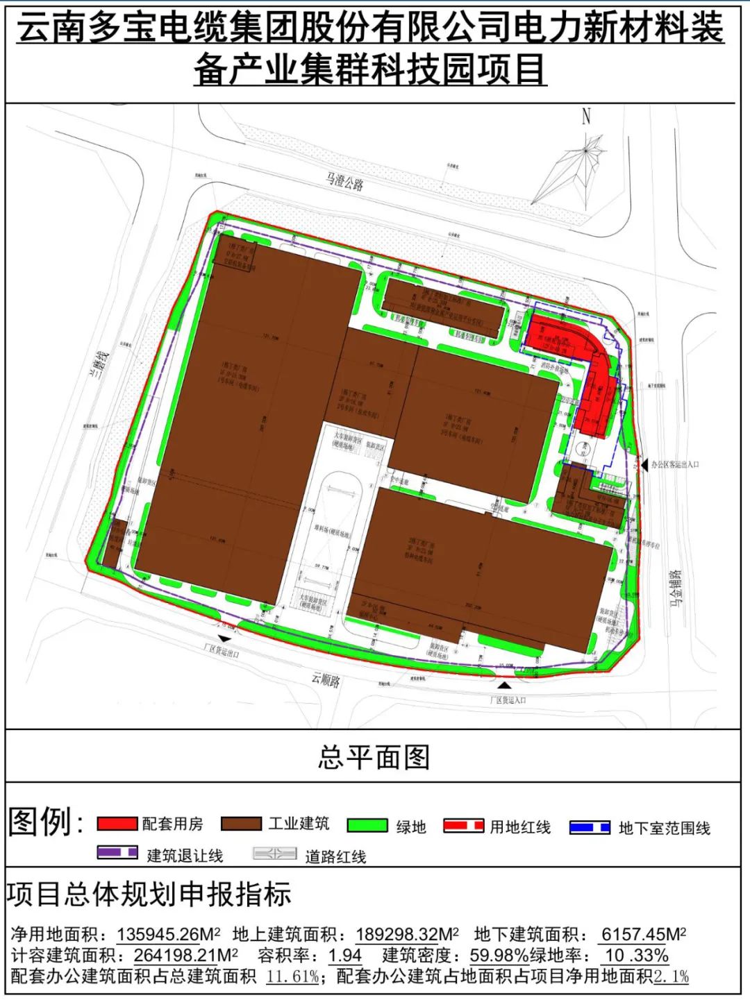 云南多宝电缆集团股份有限公司电力新材料装备产业集群科技园项目过规,将分两期建设