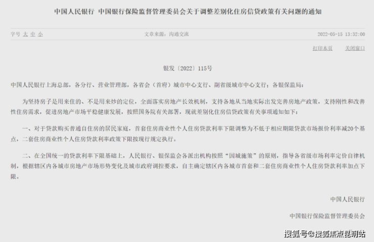 一、对于贷款购买普通自住房的居民家庭,首套住房商业性个人住房贷款利率下限调整为不低于相应期限贷款市场报价利率减20个基点,二套住房商业性个人住房贷款利率政策下限按现行规定执行。