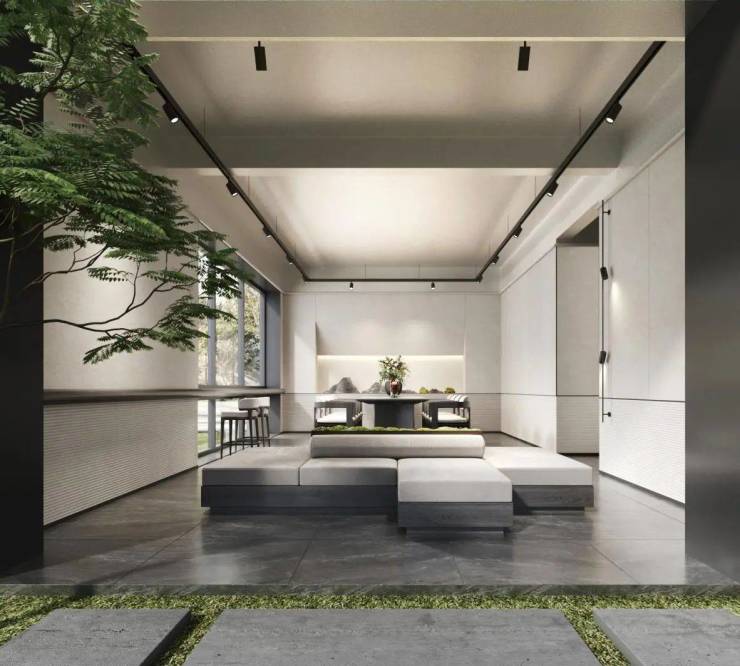 除此之外,龙湖·青雲赋聚焦于高阶生活场景的描述,将会客厅、休憩区则做成半开放式,形成景观呼应,兼具功能性和观赏性。闲暇时,可以在会客区与朋友邻居闲聊、洽谈,亦可在品茗区煮茶论道。这种高定的泛会所空间体验,不仅扩展了日常生活,也满足了业主的精神享受。