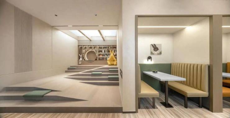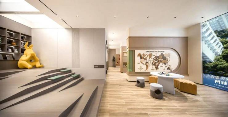 龙湖·青雲赋考虑到社区未来有大量亲子家庭,基于小业主对架空层的高频使用率,规划有探险星球和“周末剧场”智慧屋两大儿童主题空间。此次开放的“周末剧场”智慧屋主题空间,包含了4点半学堂、学习盒子、阶梯教室等功能区。在这个充满文化气质的空间里,孩子们可以和志趣相投的伙伴一起翻阅书籍,一起作业,让思绪在书海遨游,从书卷气中结交良友,相伴互娱,互相学习,收获课堂之外的趣味童年。