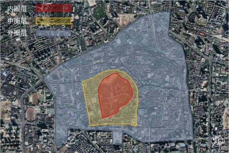 该区域形成了“三圈层”空间结构,内圈层提升景观层次,原则上只拆不建;中圈层以历史文化保护与文创为主,低强度开发;外圈层综合开发圈层,整理可开发用地,推进危旧房、老旧小区有机更新。