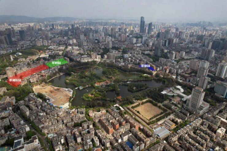 至此,“两坡一街”(先生坡、沈官坡和景虹街)、洗马河水系恢复及带状公园已重塑并呈现,翠湖北门广场原省文联地块、省文化厅地块建筑物征拆已完成。但翠湖的改造之路并未结束,至2021-2022年掀起了大规模改造。