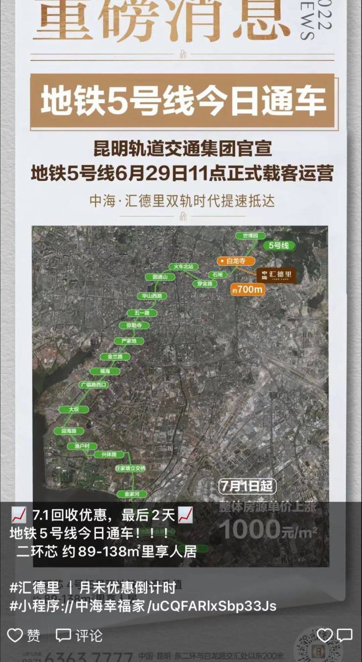6月29日上午,期待已久的昆明地铁5号线正式开通运营。5号线的开通让昆明人激动不已,也让以5号线为卖点的不少楼盘宣布即将调价。