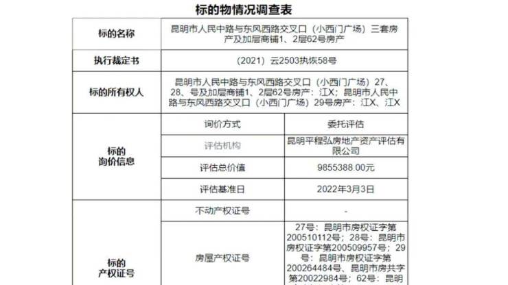 昆明市中心两家桥香园门店房产将被司法拍卖!起拍价超4000万