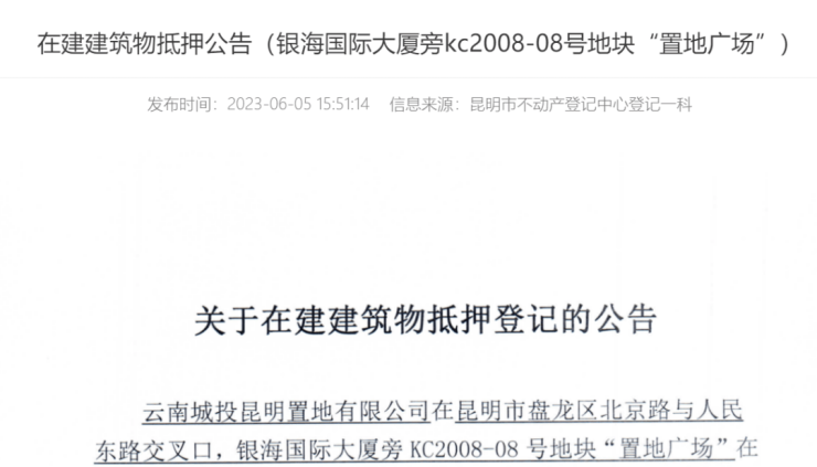 6月5日,昆明不动产登记中心发布了一则在建物抵押公告。