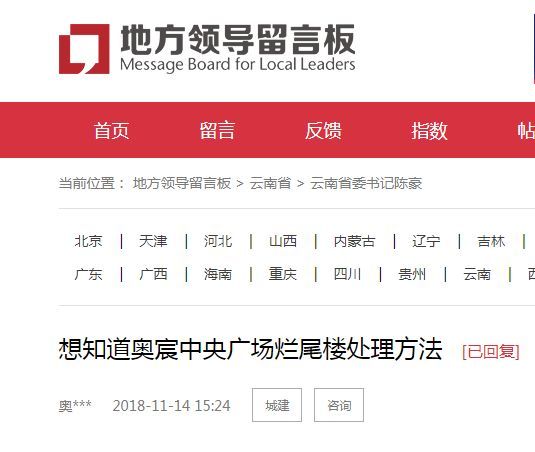 2018年11月14日,一名网友在人民网地方领导留言板发问: