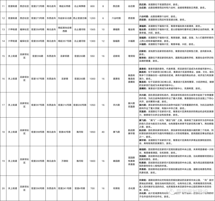 21条道路中,有20条是新建道路拟命名,1条是拟更名。