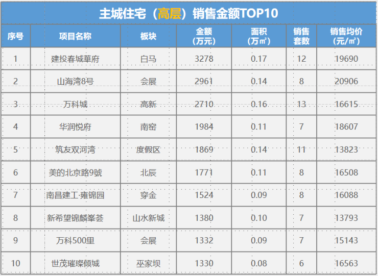 本周住宅成交4.8万㎡,环比上涨7%。主力成交项目为建投春城華府12套,0.17万㎡ ;万科城13套,0.16万㎡;筑友双河湾11套,0.14万㎡等。